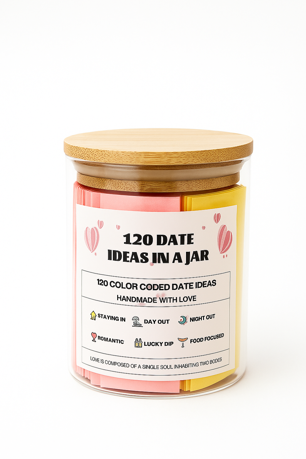 At LoveJar Co., we believe that meaningful moments don’t need to be complicated. We’re a small, passionate brand dedicated to helping couples reconnect through fun, creative, and heartfelt experiences. Every jar is designed with love, packed with 120 unique date ideas, and made to spark joy — one card at a time.
